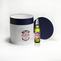 Juego de regalo de cerveza Peroni, personalizado, caja de cartón redonda promocional para paquete de seis botellas de cerveza y vidrio