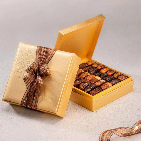 Luxus Gold Muslim Eid Mubarak Ramada Schokoladen box Leere Ramadan Datum Essbare Verpackung Matt Laminierung Prägung UV-Beschichtung für